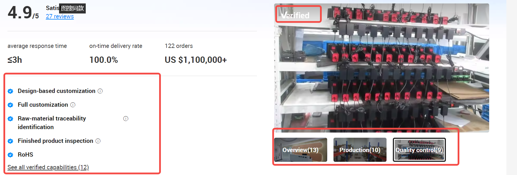 For suppliers: First of all, as mentioned above, to become an Alibaba supplier, they need to go through a strict official review mechanism. The certification of Verified Supplier is deeply certified by internationally renowned third-party institutions such as SGS, Intertek, and TUV. Besides the certification of the main products, it also includes comprehensive verification of the supplier’s scale, production, R&D, export capabilities, and the shooting of factory inspection videos. This will be displayed in the merchant’s store. By clicking on the store’s homepage, we can see the merchant’s qualification information, which largely ensures the authenticity of the supplier offline. Relatively speaking, since Verified Supplier have been verified for authenticity by authoritative third-party institutions, they are more reliable. The following is the information viewing path for a certain Verified Supplier store: