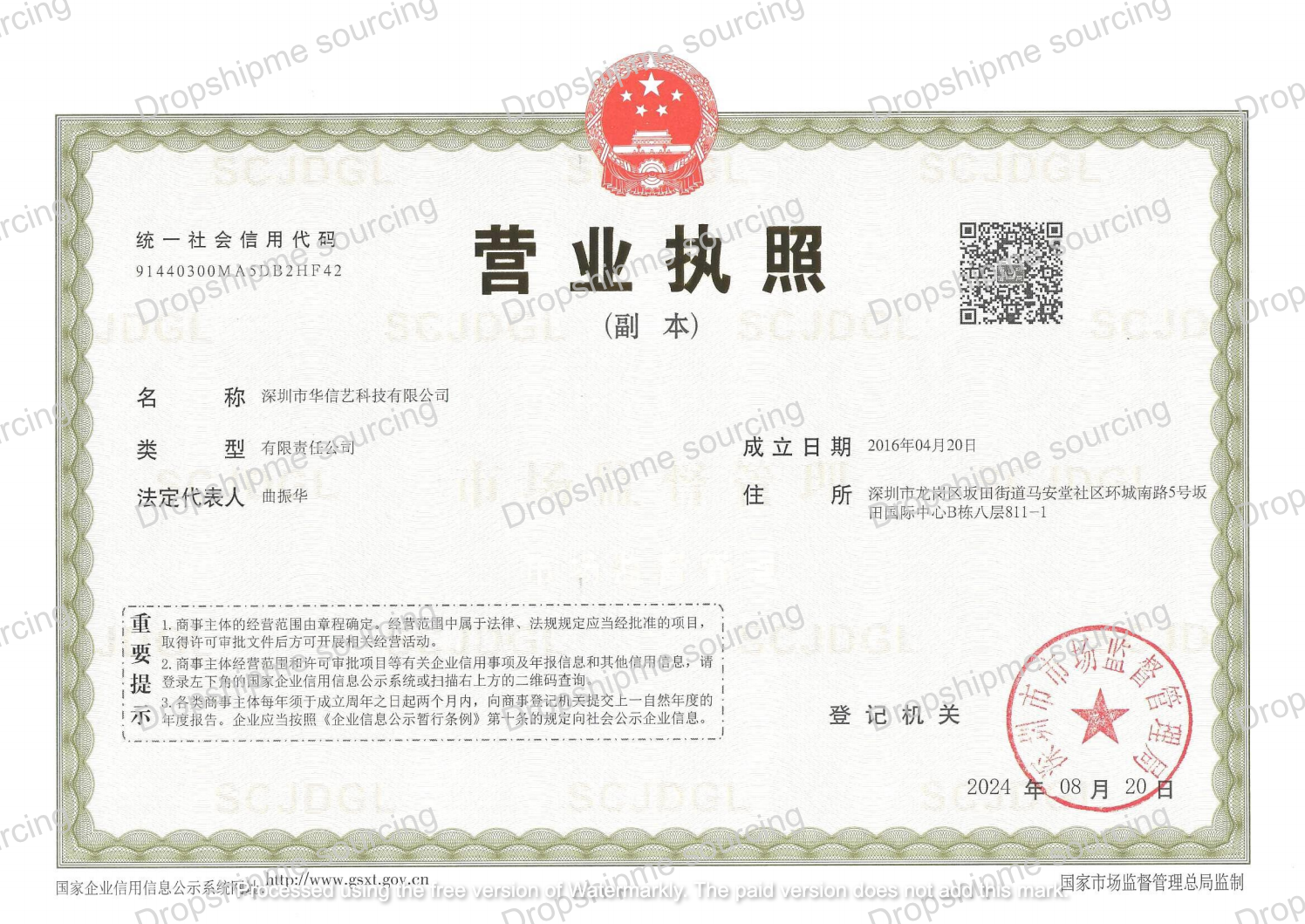 > Use China’s official database: National Enterprise Credit Information System to verify business status.