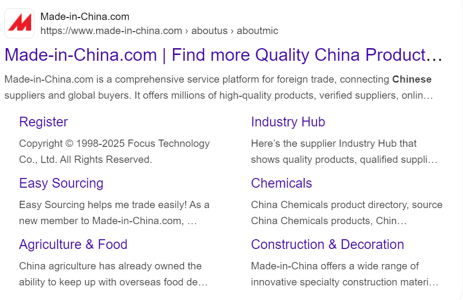 Made-in-China.com is a globally renowned B2B e-commerce platform. Founded in 1998, it has a history of more than 20 years. It is a one-stop foreign trade service platform dedicated to connecting Chinese manufacturers with global buyers. Compared with other platforms, MADEin-China has distinct characteristics, especially in the field of industrial products (machinery and equipment, components), where it has an absolute advantage. Most of the buyers on the platform are professional purchasers.