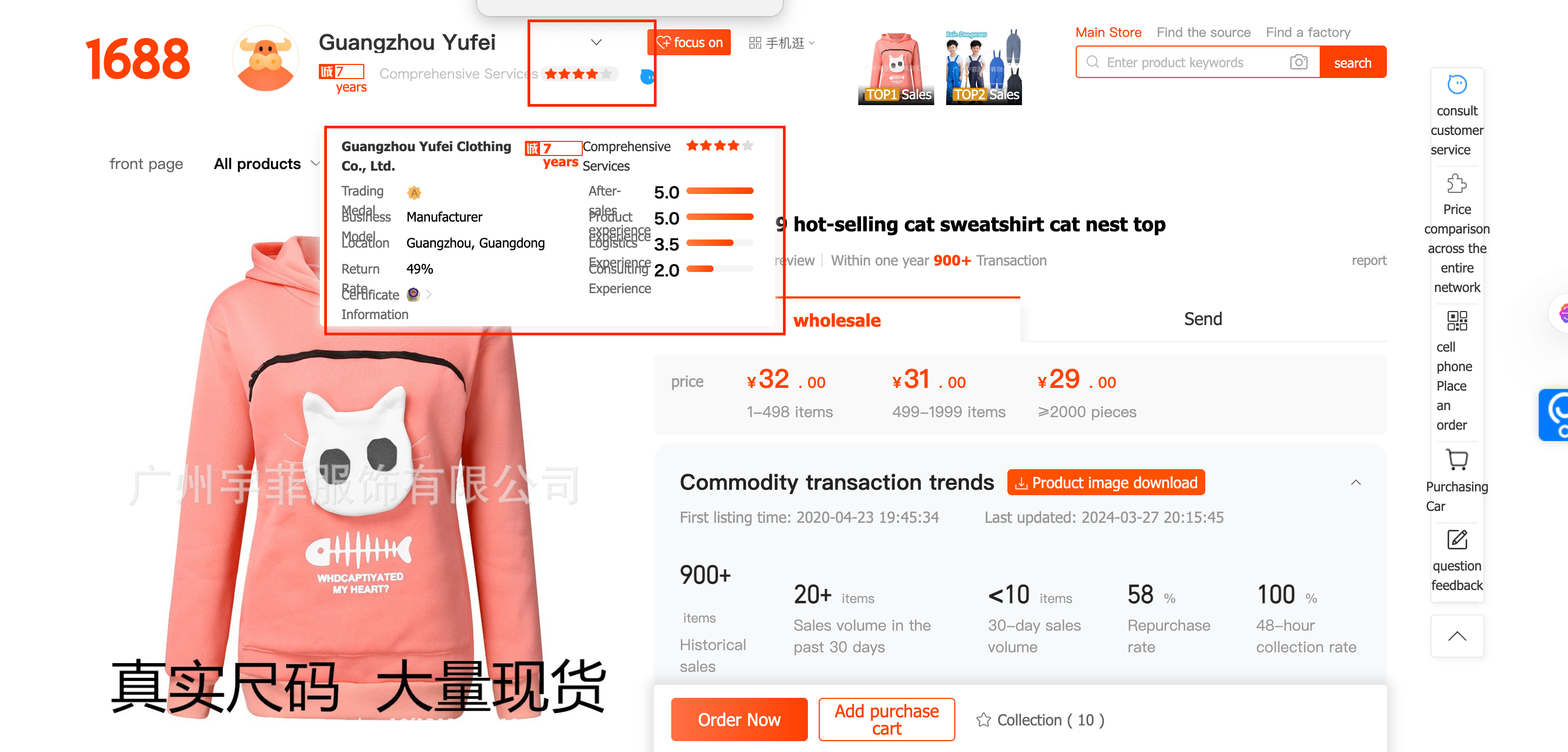 - Supplier type (e.g., 实力商家 vs. 普通诚信通)